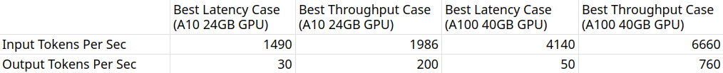 We calculate the best latency based on sending only one request at a time. To increase throughput, we send requests parallelly to the LLM. The max throughput is the case when the model is able to process the input requests without significant deterioration in latency.