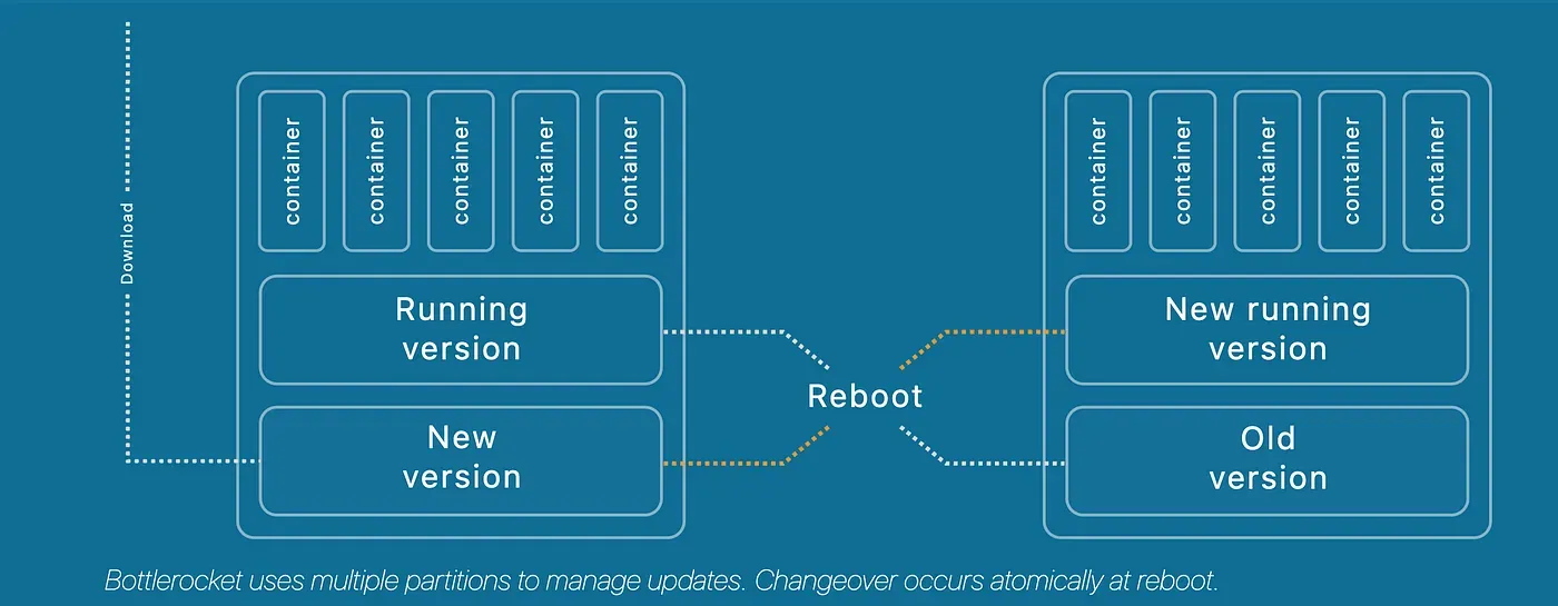 As the bottlerocket instances don’t have any shell, how would you query things like image version and its updates, basic operations or admin level tasks. To solve these tasks bottlerocket gives a well-defined HTTP API which can solve all these problems for you, simultaneously ensuring that only rightful operations are getting performed on the instances with precise steps for each operation.