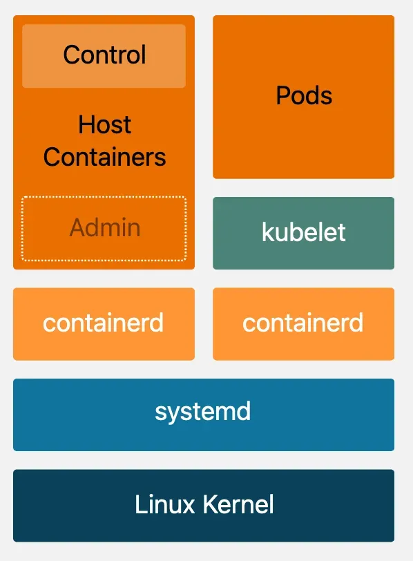 Bottlerocket instances are specific to containerized workloads and for this two sets of containerd instances run. One of them is used to run your normal containers on your orchestrator engine like kubelet and other is to run an admin container which can act as a pseduo shell for you to run API driven HTTP calls using apiclient , a tool given by bottlerocket to run API requests, and to debug your instances. This admin containers doesn’t ensure mutability on root file system.