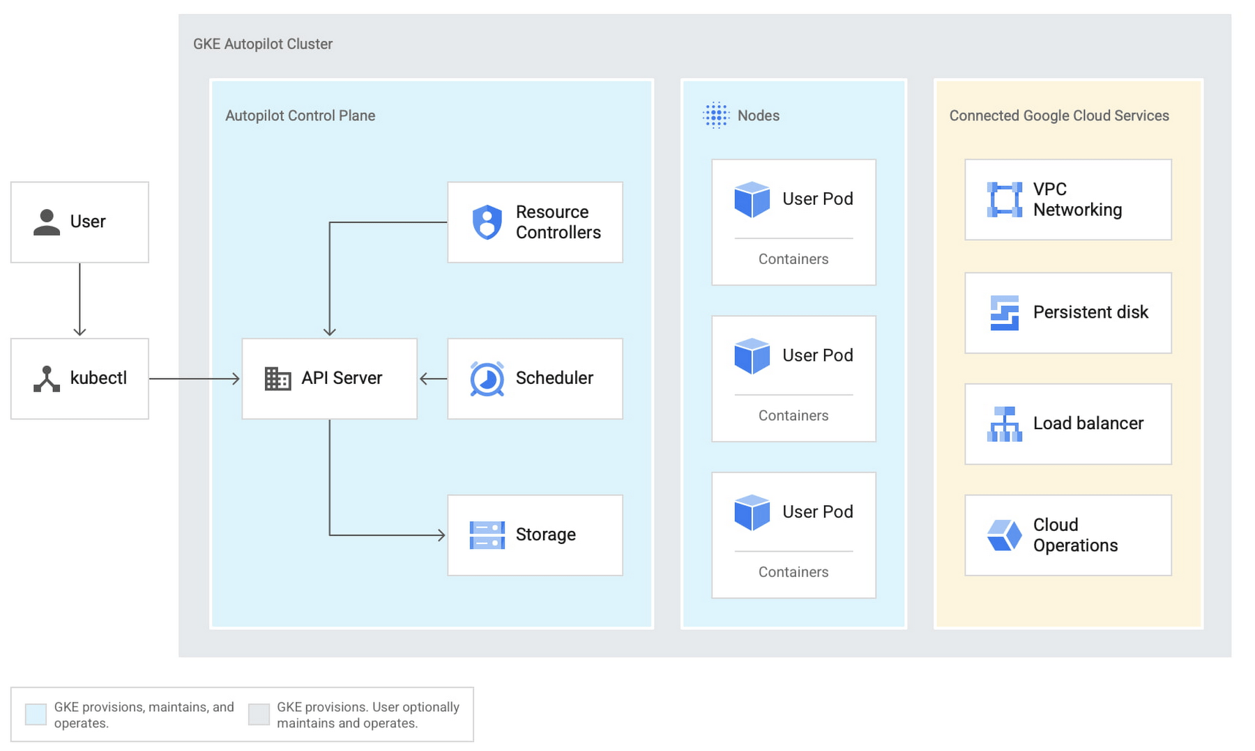 Autopilot is a managed service that uses machine learning algorithms to determine the optimal number of nodes for the cluster based on the current workload. It also provides features such as automatic upgrades and patches, making it easy to keep the cluster up-to-date and secure.