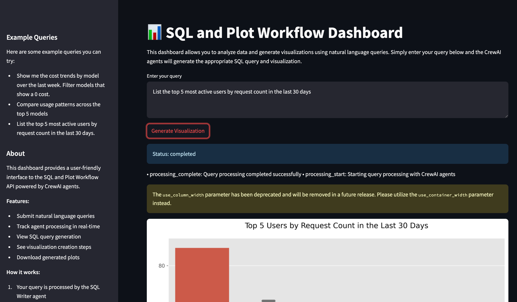 - Visualization Agent generates visualizations and returns images for display
