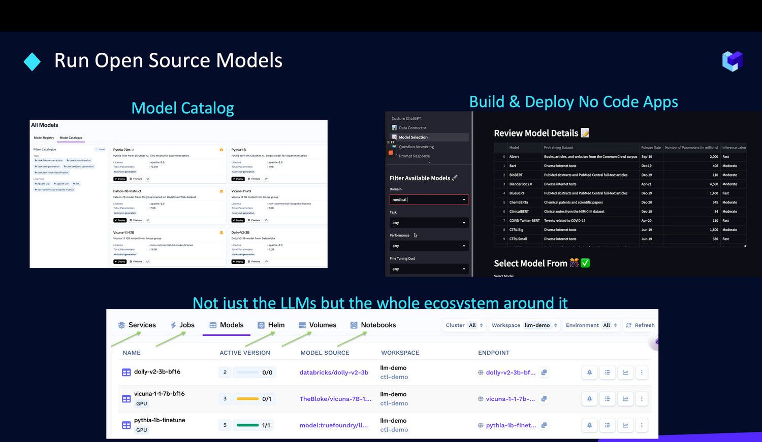 - Model Catalogue: Of open source LLMs- optimized for inference & fine-tuning.