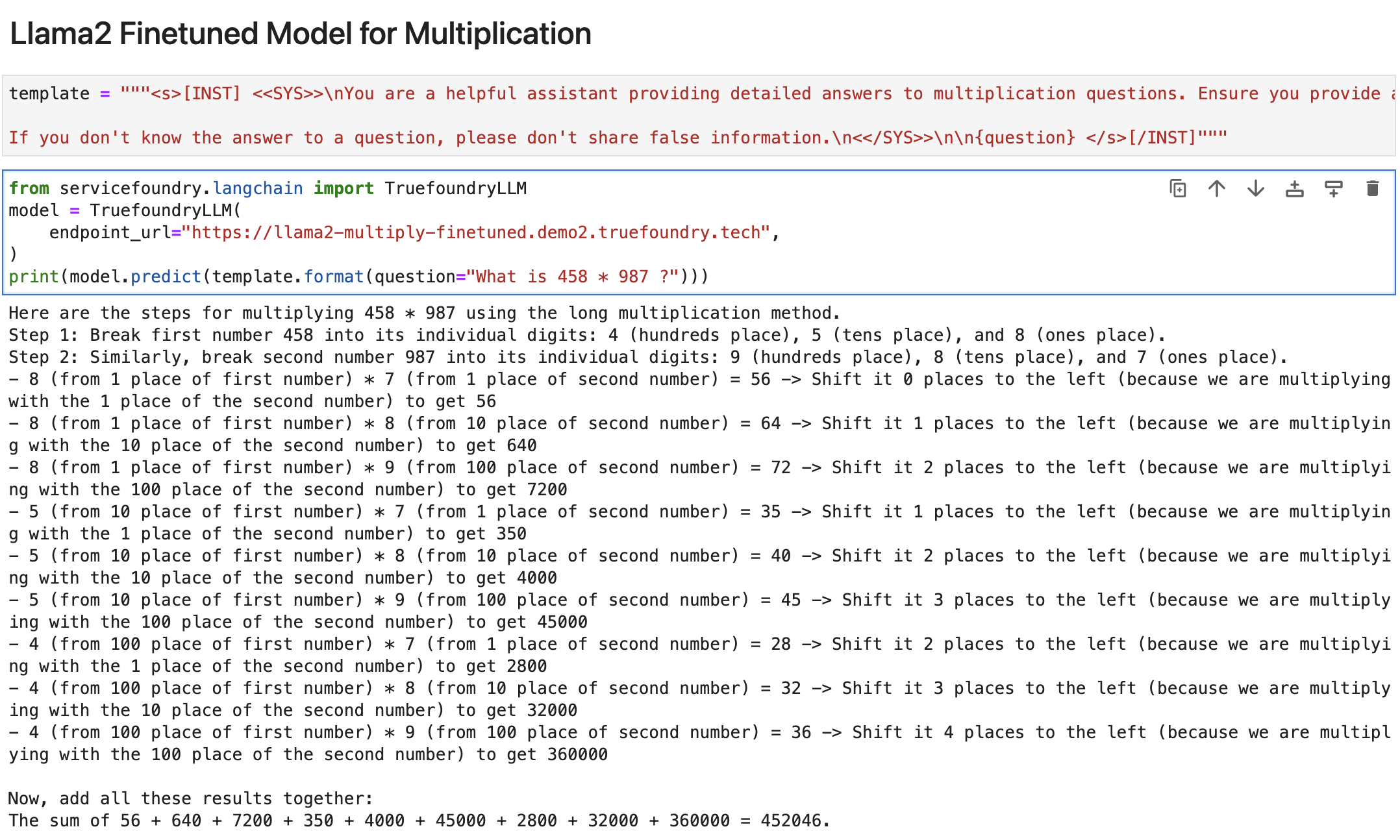 Finally, we deployed the finetuned model on TrueFoundry again and here are the results: