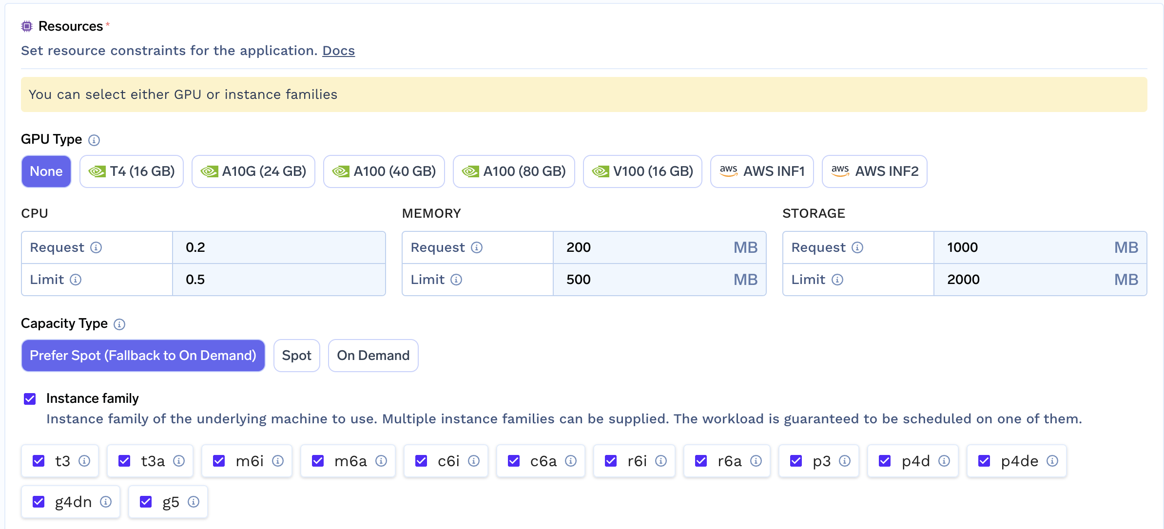 t4, a100 - capacity type: Purchasing option e.g.