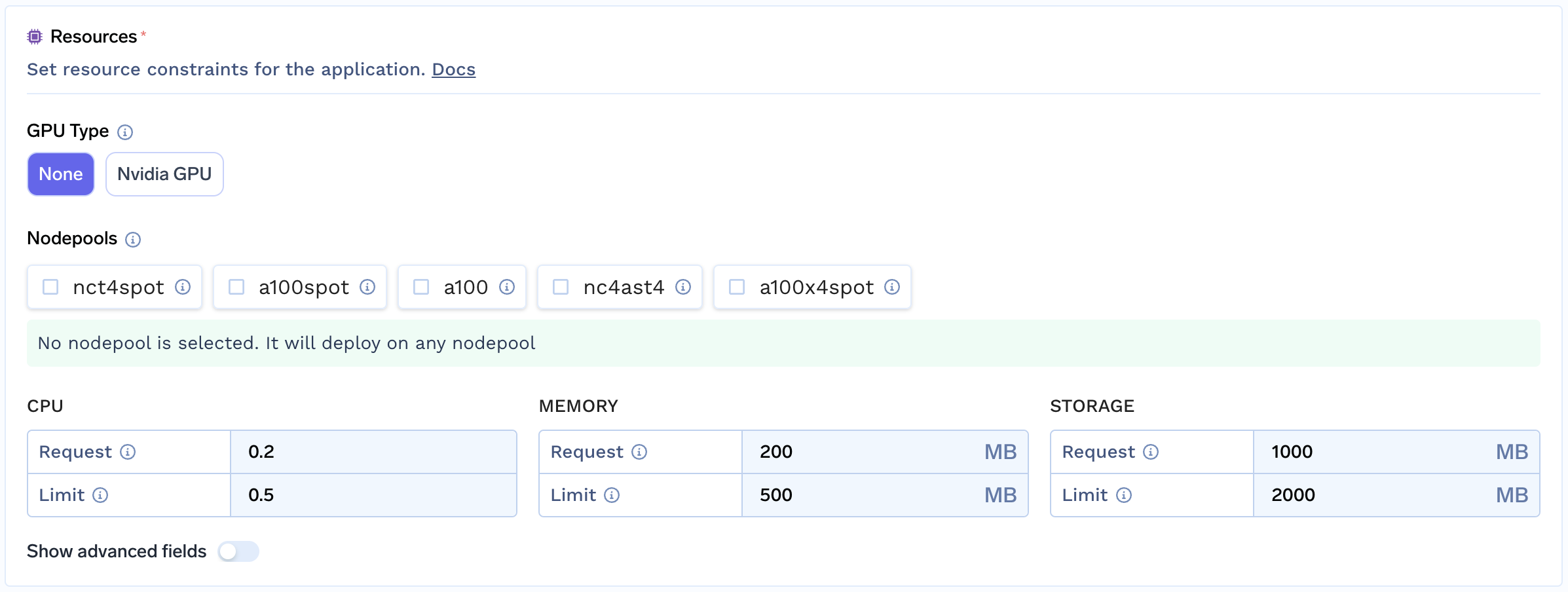 TrueFoundry offers advanced filtering capabilities for node pools, simulating the node auto-provisioning experience.
