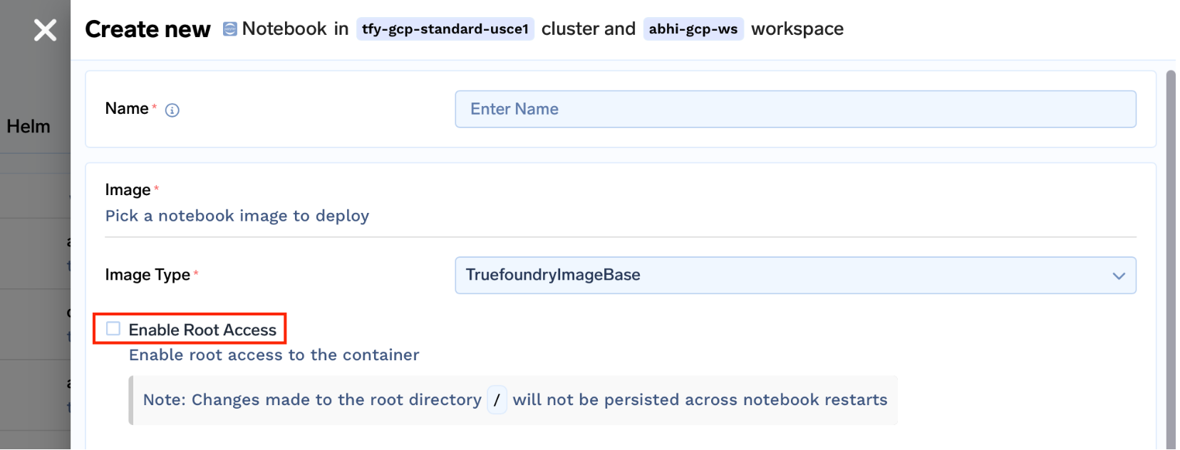 - Persistent Root Installations: When root access is provided to the user, whether or not root package installations (e.g. apt install pkgs) are persisted across Notebook Restarts.