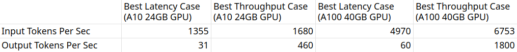 - 1500 Input tokens, 100 output tokens (Similar to Retrieval Augmented Generation use cases)
