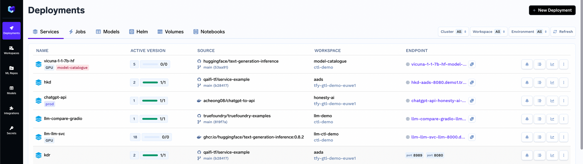 Truefoundry Control Plane provides a single pane of glass to view all the kubernetes clusters across cloud providers and on-prem in the company. This also makes it quite easy to move workloads from one cluster to another using our Clone and Promote feature.